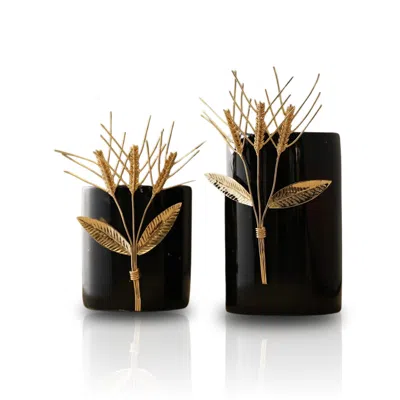 Gold / Black Wheat Black Marble Vase, Set Of Two In Multi