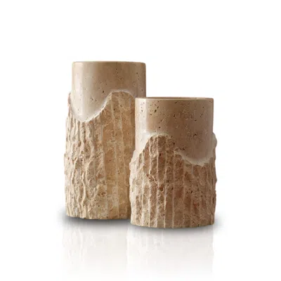 Neutrals Natural Travertine Vase Set Of Two – Sculpted Stone Vessels