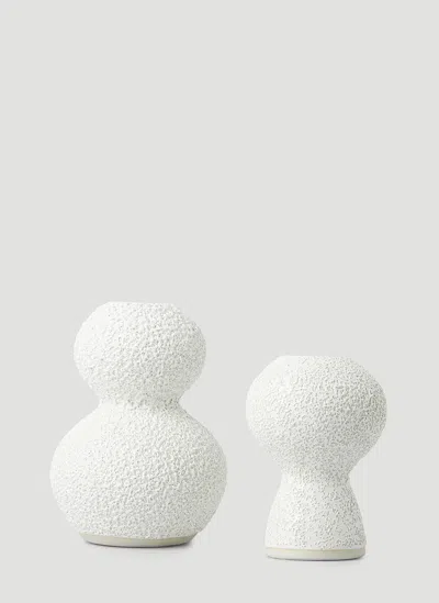 Lava + Bone Textured Candle Holders (set Of Two) In White