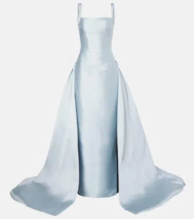 Strapless Ruched Satin And Twill Gown In Blue