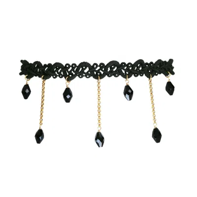 Women's Gold / Black Necklace - Romantic Lace Choker Black Crystals In Multi