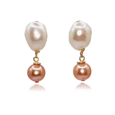Women's Gold / White / Pink Four Seasons Earrings - Citrine Pearl & Gold In Brown