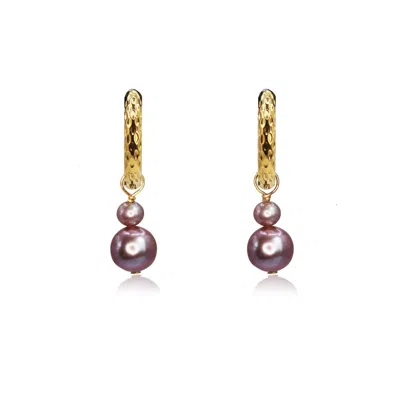 Women's Gold / White / Pink Four Seasons Earrings - Amethyst Pearl & Gold In Purple