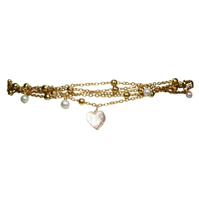 Women's Gold / White Necklace - Renaissance Heart Pearl & Gold Choker St-valentin Edition In Multi