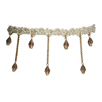 Women's White / Gold Necklace - Romantic Lace Choker Champagne Crystals In Multi