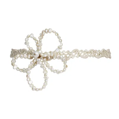 Women's White / Gold Necklace - Serenade Lace Flower Choker Pearl & Gold In Multi