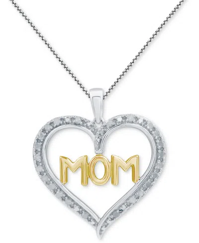 Diamond Mom Heart 18" Pendant Necklace (1/4 Ct. T.w.) In Sterling Silver & 14k Gold-plate In Sterling Silver Gold-plate