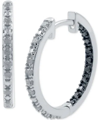 White Diamond (1/6 Ct. T.w.) & Black Diamond (1/10 Ct. T.w.) In & Out Small Hoop Earrings In Sterlin In Sterling Silver