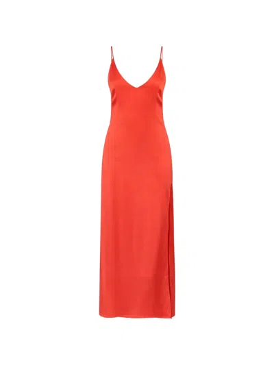Elisabeth Side-slit V-neck Midi Dress In Brown