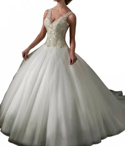 Strapless Crystall Ball Gown In Ivory In White
