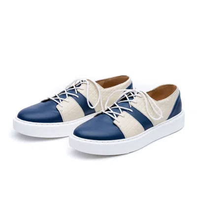 Men's Neutrals / Blue Blue And Off White Leather Sneakers
