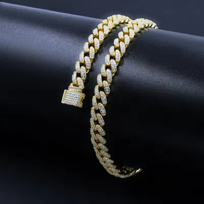 Pre-owned Men's Icy 14k Yellow Gold Over Sterling Silver Custom "alpine" Chain 8mm