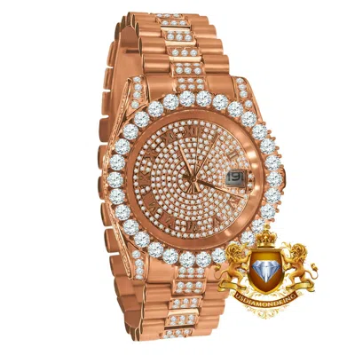 Pre-owned Mens 18k Gold Solid Stainless Steel Simulated Diamonds Presidential Watch 41mm In Rose Gold With White Cz