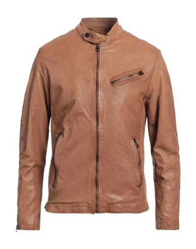 Man Jacket Camel Size 3xl Soft Leather In Beige