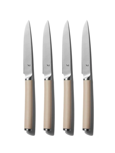 Matte Stainless Steel Set Of 4 Table Knives And Holder In White