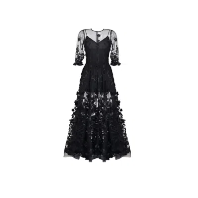 Women's Black / Pink / Purple Dress Fabiola With Flowers In Black/pink/purple