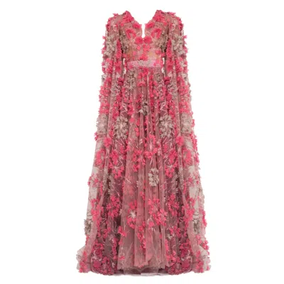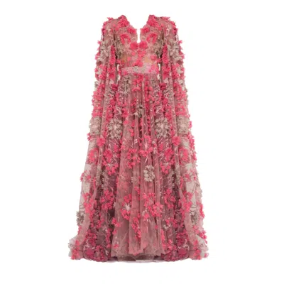 Women's Pink / Purple Dress Hortensia With Detachable Sleeves Maxi Coral In Pink/purple