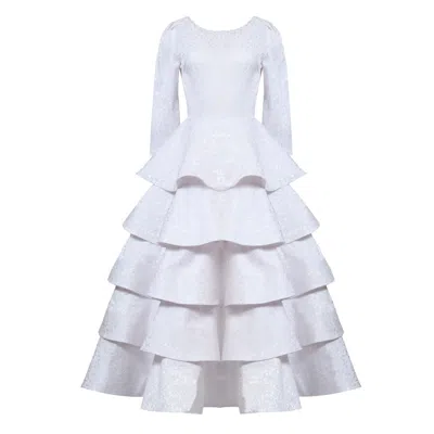 Women's White 100% Silk Dress Scarlett With Polka-dot Print Maxi