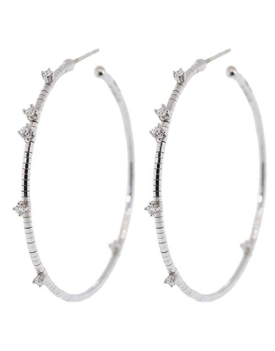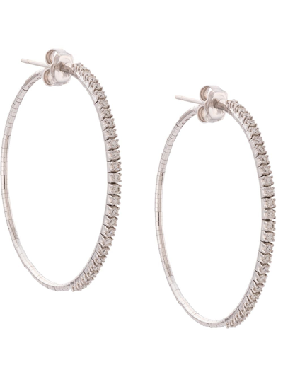 18kt White Gold Embellished Hoop Earrings In Silver
