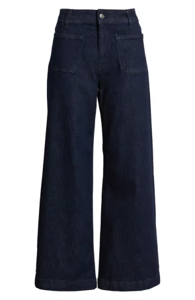 Paloma Marine Patch Pocket High Waist Wide Leg Jeans In Blue