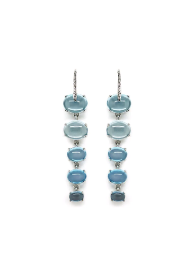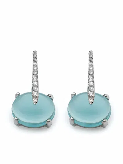 18kt White Gold Sardinia Short Diamond And Topaz Drop Earrings In Blue