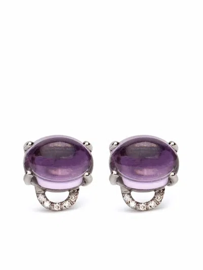 18kt White Gold Marmaris Amethyst Diamond Stud Earrings In Silver