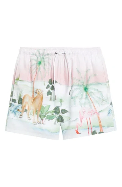 Palms Evil Eye Organic Cotton Drawstring Shorts In Ivory/multi