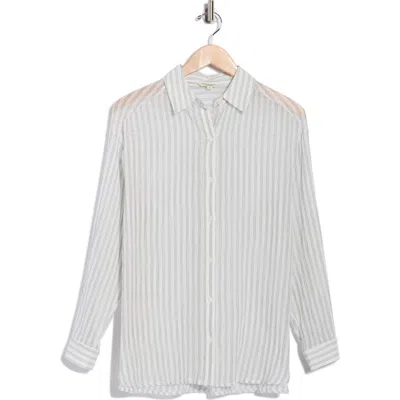 Stripe Roll Sleeve Button-up Shirt In White