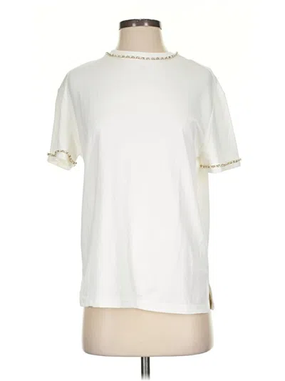 Short Sleeve Top Ivory Mock Neckline Tops In White