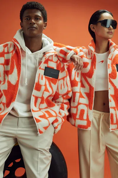 F1 Zip-through Sherpa Jacket In Papaya/white