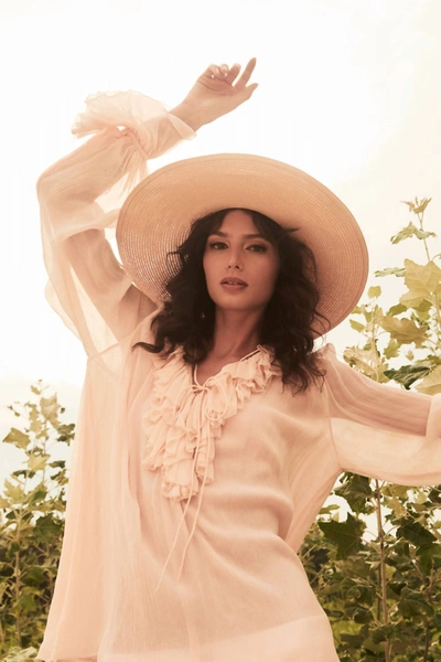 Charlotte Deep V-neck Blouse In Dogwood In Pink