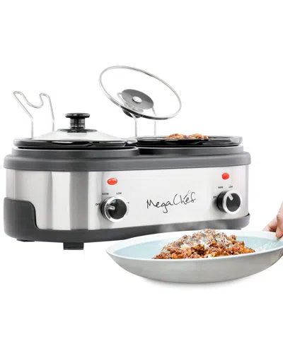 Dual 1.5 Quart Crock Buffet Slow Cooker In Silver