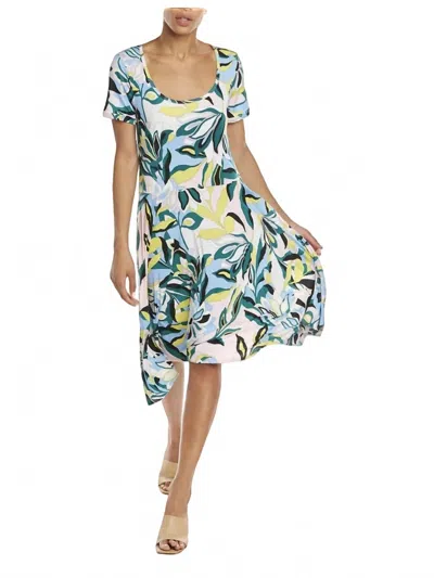 Swirl Floral Printed Jersey Dress In Green/pink/blue In Multi