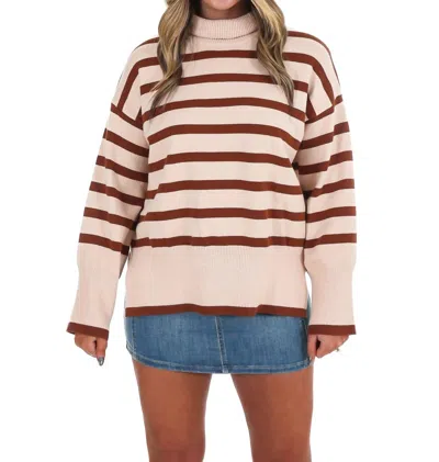 Storied Stripe Oversized Turtleneck Sweater In Mocha In Brown