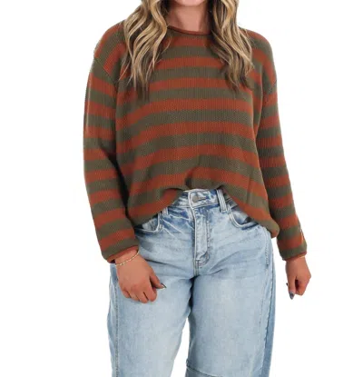 Striped Intentions Long Sleeve Sweater In Rust In Brown