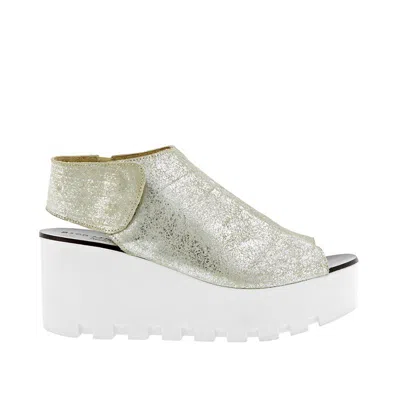 Pre-owned 8100 Slingback Wdg Pltfrm Sndl In Platino