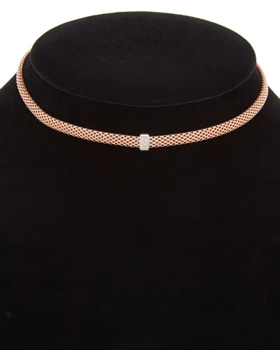 18k Over Sterling Silver Diamond Choker Mesh Necklace In Gold