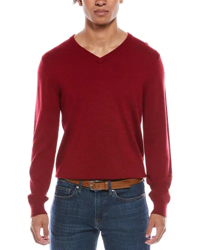 Merino Wool V-neck Sweater In Red