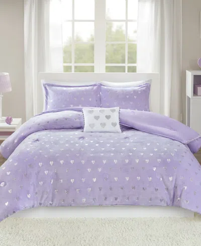 Rosalie Metallic Heart 4-pc. Comforter Set, Full/queen In Purple,silver