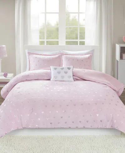 Rosalie Metallic Heart 4-pc. Comforter Set, Full/queen In Pink,silver