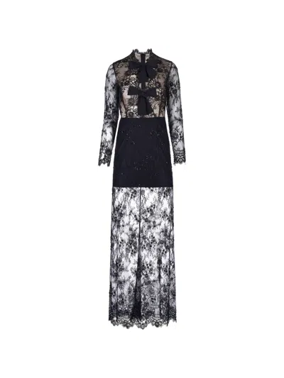 Lace Bow-embellishment Maxi Dress In Black