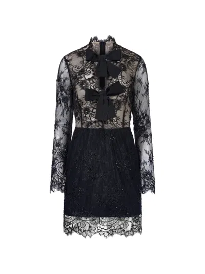 Lace Bows-embellishment Mini Dress In Black