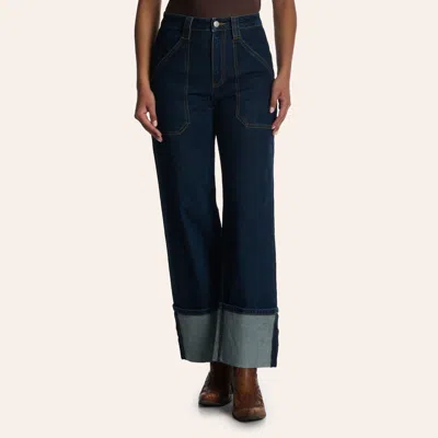 Denim Women's Dark Wash High Rise Wide Leg Utility Pocket Cuffed Jeans In Blue