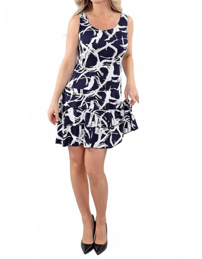 Sleeveless Ruffle Dress In Deep Navy/white In Blue