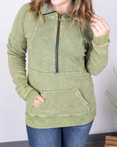 Vintage Wash Half-zips In Olive In Green