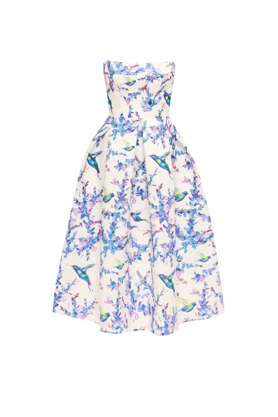Strapless Midi Dress With Bird And Flower Print, Garden Of Eden In Multi Color