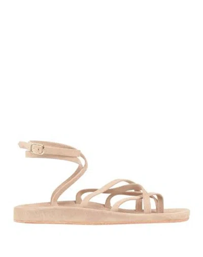Woman Thong Sandal Beige Size 7 Leather