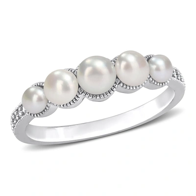 Cultured Freshwater Pearl And Diamond Accent Halo Five Stone Ring In 14k White Gold