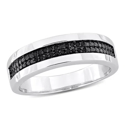 1/10ct Tdw Black Diamond Men's Double Row Anniversary Band In Sterling Silver