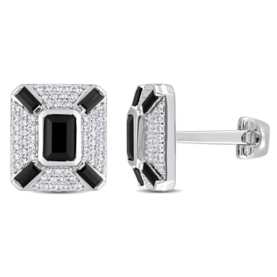 5-4/5ct Tgw Octagon And Baguette-cut Created Black Sapphire And White Sapphire Cufflinks In Sterling In Silver